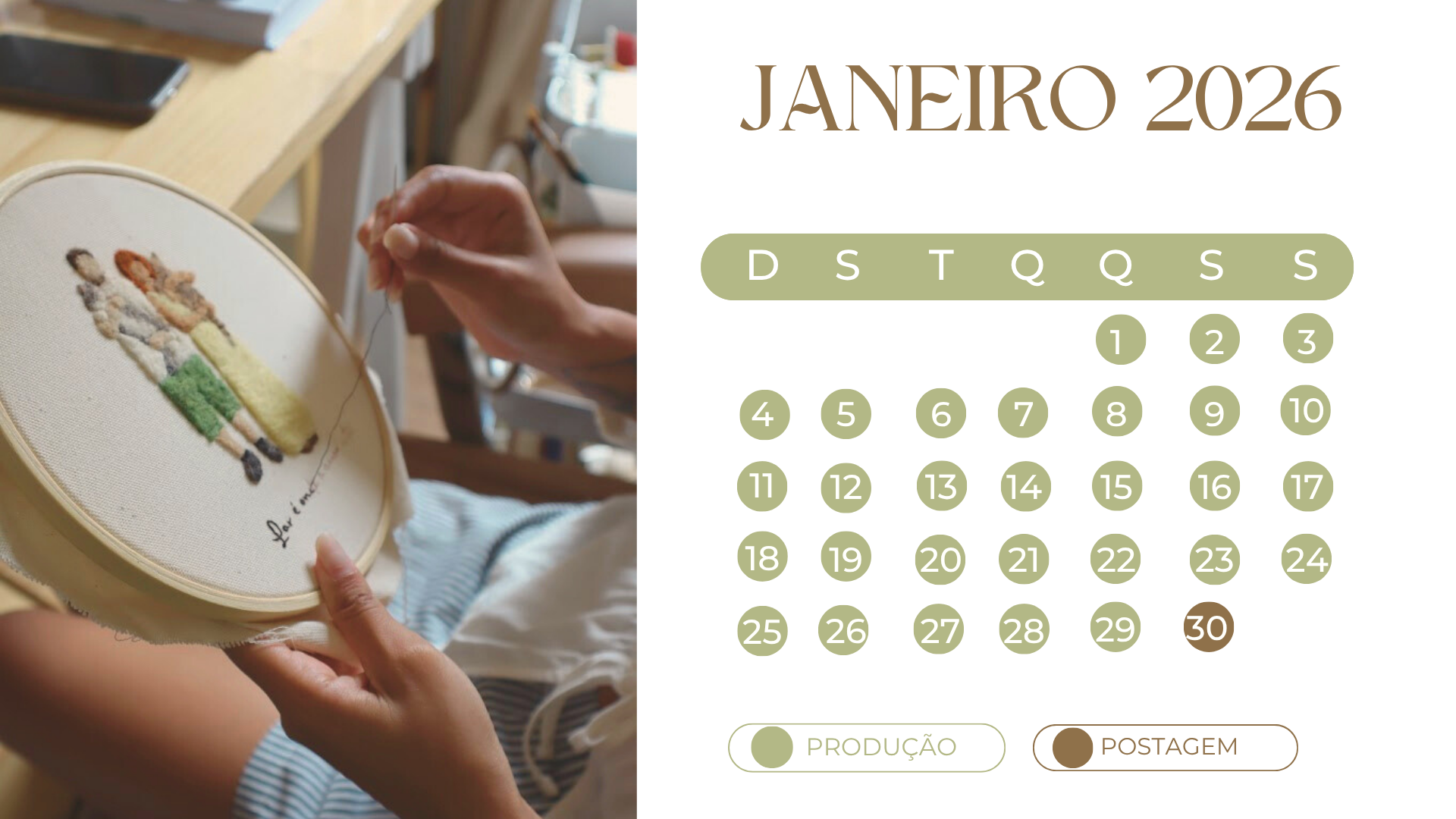 1 • Ao comprar um bordado personalizado, sua vaga entra na agenda do mês disponível no momento da compra.